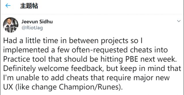 设计师大概意思就是训练模式自从上线至今,基本上没有进行过几次更新,毕竟,设计师平时都没有太多的心思去改动这种工具。但一直有很多玩家请求设计师,完善训练模式的各种作弊手段,比如今年早些时候终于添加了一键叠满女神之泪。而Jag听取了大家的反馈,将在本周的测试服中,上线一些新的改动,但如果是设计重大UX改动的话,他则是无能为力。