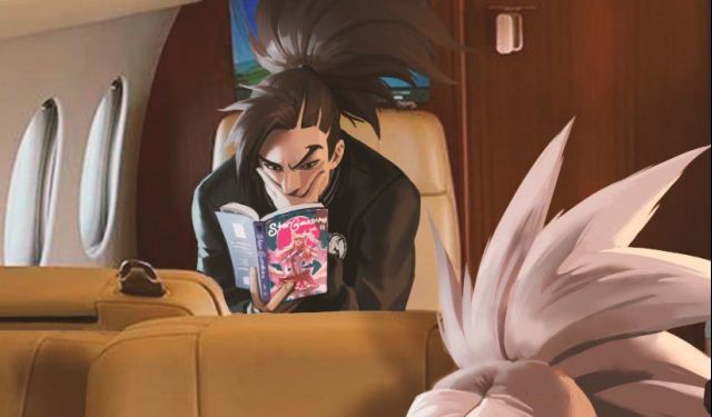 第一眼看上去的话,就是真实伤害组合的成员乘坐飞机,看起来是前往巴黎总决赛的照片。亚索正在看书,赛呢和卢锡安在闲聊,阿卡丽和艾克分享音乐,而奇亚娜在补眠。而我们搭配各种彩蛋细节来研究的话,这幅漫画还是很有趣。